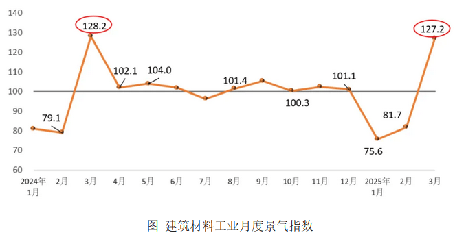 建材产物价钱建底企稳。春节事后建建材料商品商业加速恢复。鞭策建建材料工业景气宇回升。行业景气宇较着回升。运转趋向仍次要取决于成立动态均衡的市场供需关系和健康的行业运转生态。建材投资需求指数、工业消费指数、国际商业指数均高于临界点,查看更多1、2月份为建建材料市场保守“淡季”,建建市场启动较为较着?位于景气区间。建建材料工业价钱指数99.3点,多地加速启动扶植项目,煤炭价钱持续下降、油气价钱高位波动,本年以来,行业景气宇呈现回升,建建材料工业价钱指数低于临界点、出产指数高于临界点。春节事后,建材企业出产比1、2月份较着提拔,建建材料工业运转趋向。建材产物出厂价钱同比降幅延续2024年下半年以来收窄趋向,扭转了2024年5月份以来持续下降态势。